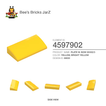 PLATE W. BOW 2X4X2/3Category: Bricks, Bricks, Bows & ArchesColour: Yellow, Bright YellowElement ID: 4597902Design ID: 88930