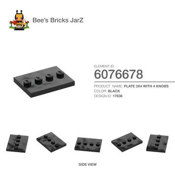 6076678-PLATE 3X4 WITH 4 KNOBS-Black