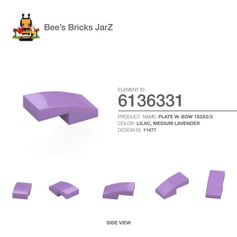 PLATE W. BOW 1X2X2/3Category: Bricks, Bricks, Bows & ArchesColour: Lilac, Medium LavenderElement ID: 6136331Design ID: 11477