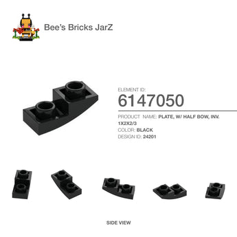 PLATE W/ HALF BOW INV. 1X2X2/3Category: Bricks, Bricks, Bows & ArchesColour: Black, BlackElement ID: 6147050Design ID: 24201