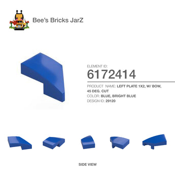 6172414-LEFT PLATE 1X2, W/ BOW, 45 DEG. CUT-Bright Blue