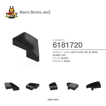 6181720-LEFT PLATE 1X2, W/ BOW, 45 DEG. CUT-Black