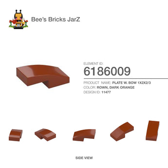 PLATE W. BOW 1X2X2/3Category: Bricks, Bricks, Bows & ArchesColour: Brown, Dark OrangeElement ID: 6186009Design ID: 11477