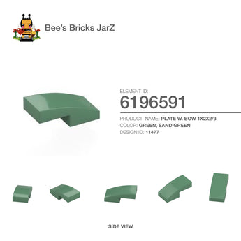 PLATE W. BOW 1X2X2/3Category: Bricks, Bricks, Bows & ArchesColour: Green, Sand GreenElement ID: 6196591Design ID: 11477