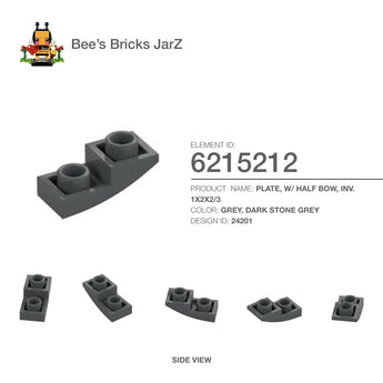 6215212-PLATE W/ HALF BOW INV. 1X2X2/3-Dark Stone Grey