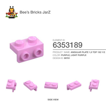 ANGULAR PLATE 1,5 TOP 1X2 1/2Category: Plates, Plates, ModifiedColour: Purple, Light PurpleElement ID: 6353189Design ID: 99781