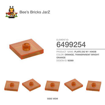 PLATE 2X2 W 1 KNOBCategory: Plates, PlatesColour: Transparent, Transparent Bright OrangeElement ID: 6499254Design ID: 92569