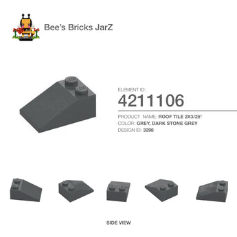 ROOF TILE 2X3/25°Category: Bricks, Bricks, SlopesColour: Grey, Dark Stone GreyElement ID: 4211106Design ID: 3298