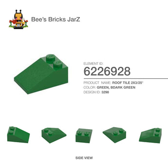 ROOF TILE 2X3/25°Category: Bricks, Bricks, SlopesColour: Green, Dark GreenElement ID: 6226928Design ID: 3298