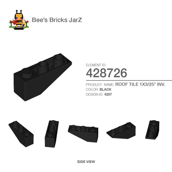 ROOF TILE 1X3/25° INV. Category: Bricks, Bricks, SlopesColor: Black, BlackElement ID: 428726Design ID: 4287