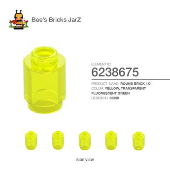 ROUND BRICK 1X1Category: Bricks, Bricks, Round & AnglesColor: Yellow, Transparent Fluorescent GreenElement ID: 6238675Design ID: 35390