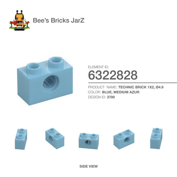 TECHNIC BRICK 1X2, Ø4.9Category: Bricks, Technic BrickColour: Blue, Medium AzurElement ID: 6322828Design ID: 3700