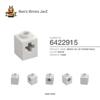 6345886-BRICK 1X1, W/ CROSS HOLE-White