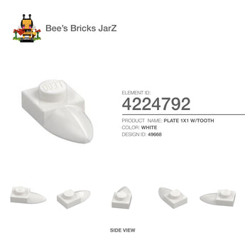 PLATE 1X1 W/TOOTHCategory: Miscellaneous, Decoration ElementsColour: White, WhiteElement ID: 4224792Design ID: 49668