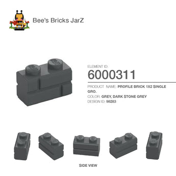 PROFILE BRICK 1X2 SINGLE GRO.Category: Bricks, BricksColor: Grey, Dark Stone GreyElement ID: 6000311Design ID: 98283